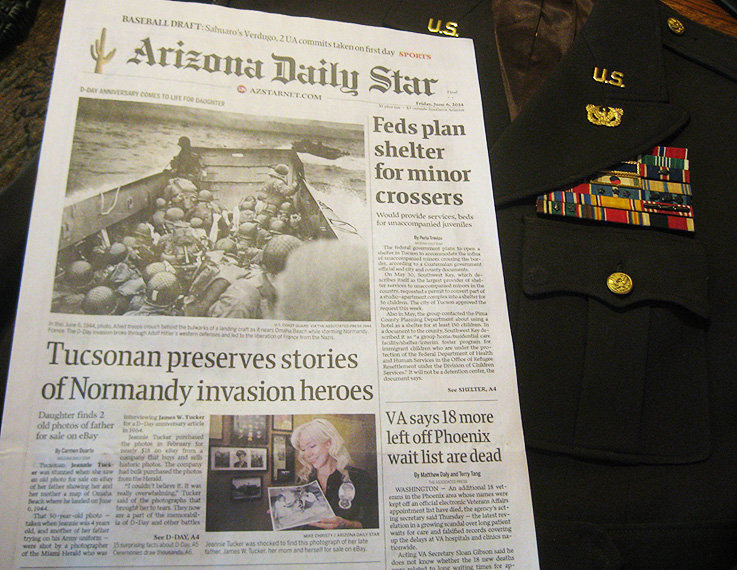 FRONT PAGE News Report: Warrant Officer James W. Tucker ARIZONA DAILY STAR - Tucson, AZ 6-7-14 (Carmen Duarte - reporter) D-Day 70th Anniversary: Tucsonan preserves stories of Normandy invasion heroesHistory comes to life for daughter, finding dad's photo on eBay