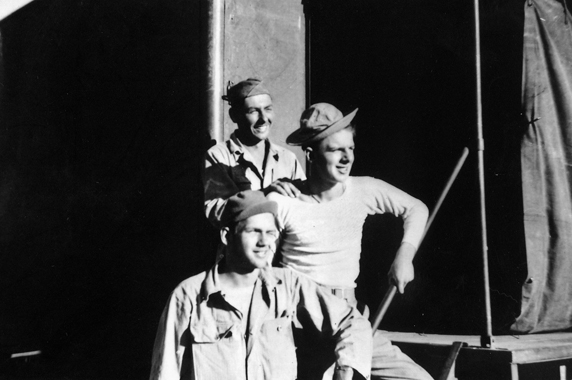 Camp White, Oregon. Sgt. Jessie Denton, Cpl. Ed Morton, 1st Sgt. Don Bowers Photo Provided from: Iris Bowers |