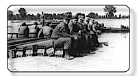 Taken During the construction of a floating bridge on the Rhine River near Oppenheim, Germany in June 1960. Seating from left to right facing the camera are John Parkinson, Camdenton , Missouri; Virgil R. Vant, Olympia, Washington; David L. Ingwerson, Eugene, Oregon; William J. Sobolewski, Vancouver, Washington; and Dennis R. Grizzle, Jonesville, Virginia. The name of the last or sixth soldier is unknown. |