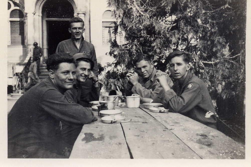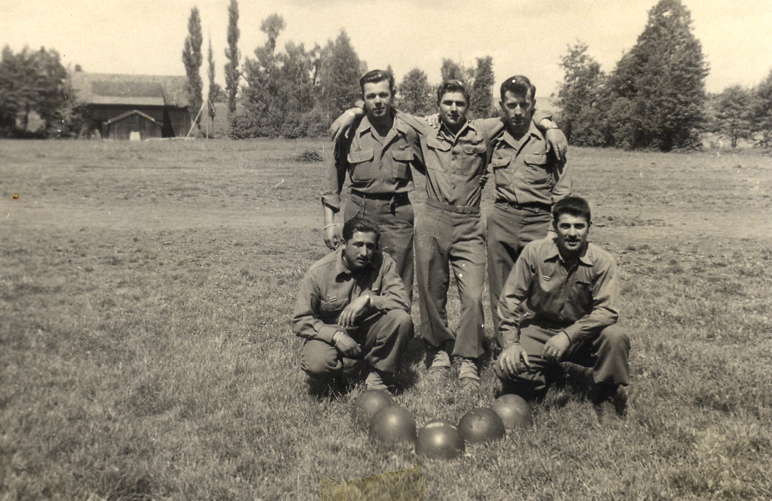 (left to right) Mike Accordino, Anthony (Tony) Cassano, ? , Leon Kukulka, Frank ? while at Stadt Steinach. Photo provided by: Leon J. Kukulka |