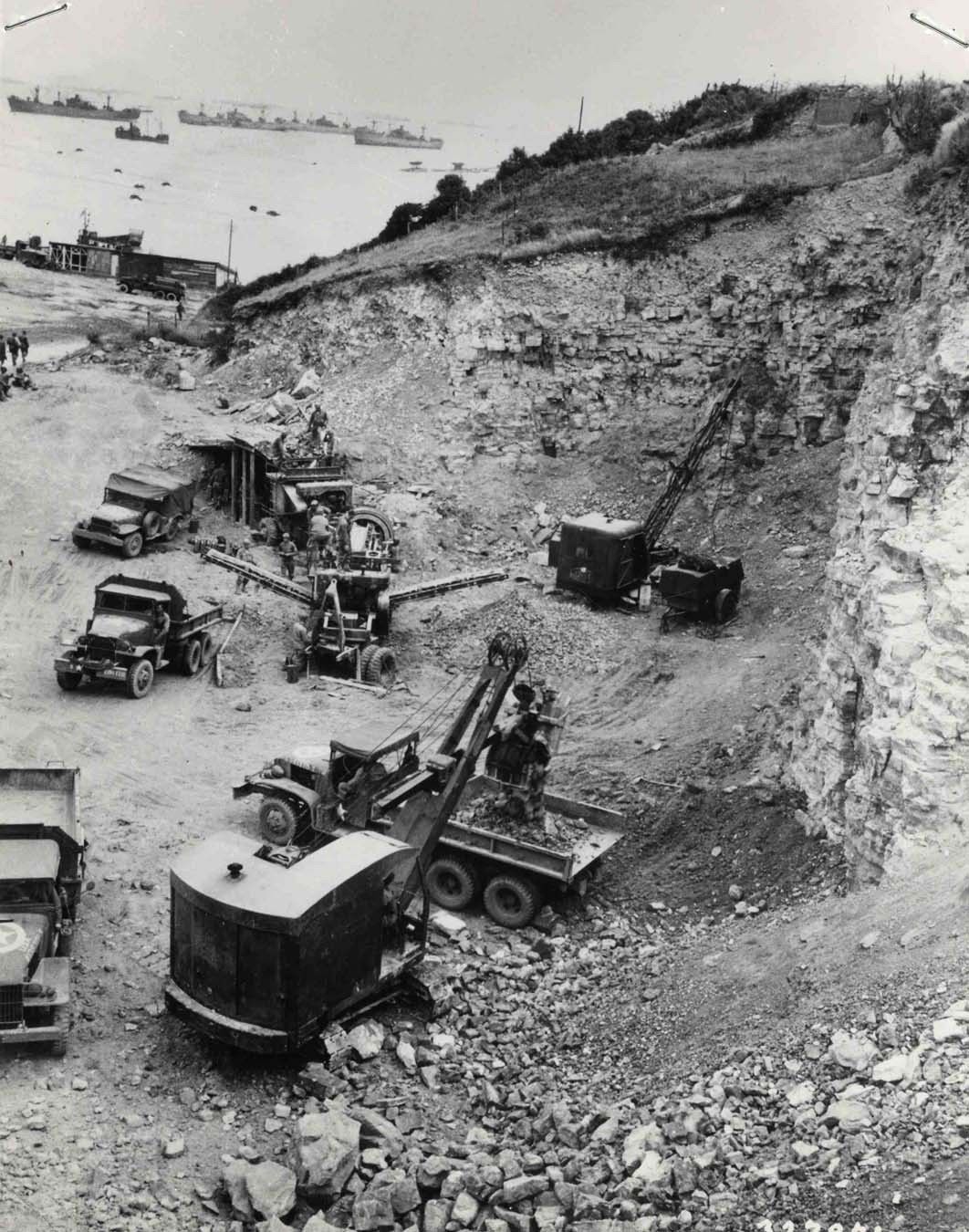 June 23rd 1944 - Omaha Beach Signal Corps stated that the quarry in the picture was taken over by American troops and provides rock for road building. Photo: 299th Open Source |