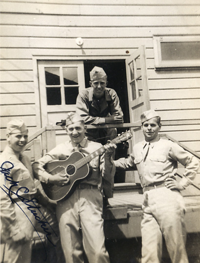 Making some music...Camp White, Oregon 1943. (Left to Right) ? Photo Provided by: Robert Muir's wife |