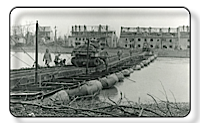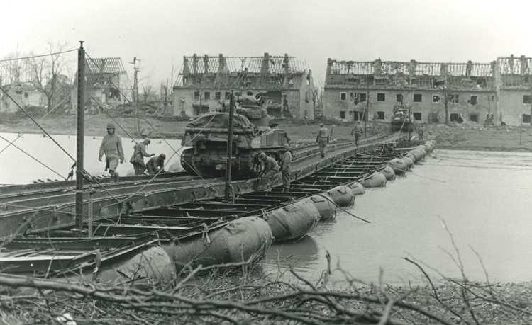 A Roer River Pontoon bridge downstream from the footbridge. Photo provided by: U.S. Army Corp of Engineers |