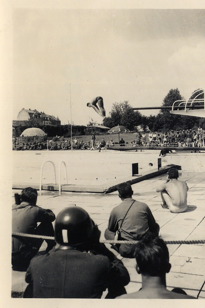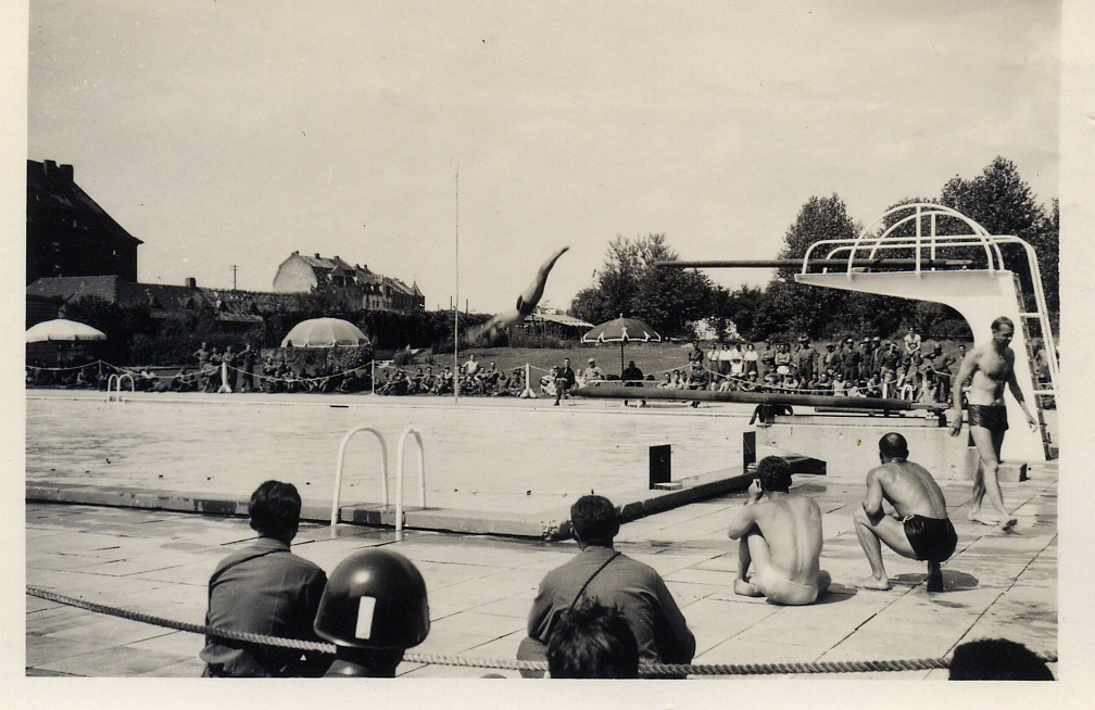 Army using the Swimming Pool at Neuremberg. This pool was used for the 1936 Olympics. Photo provided by: Leon J. Kukulka |