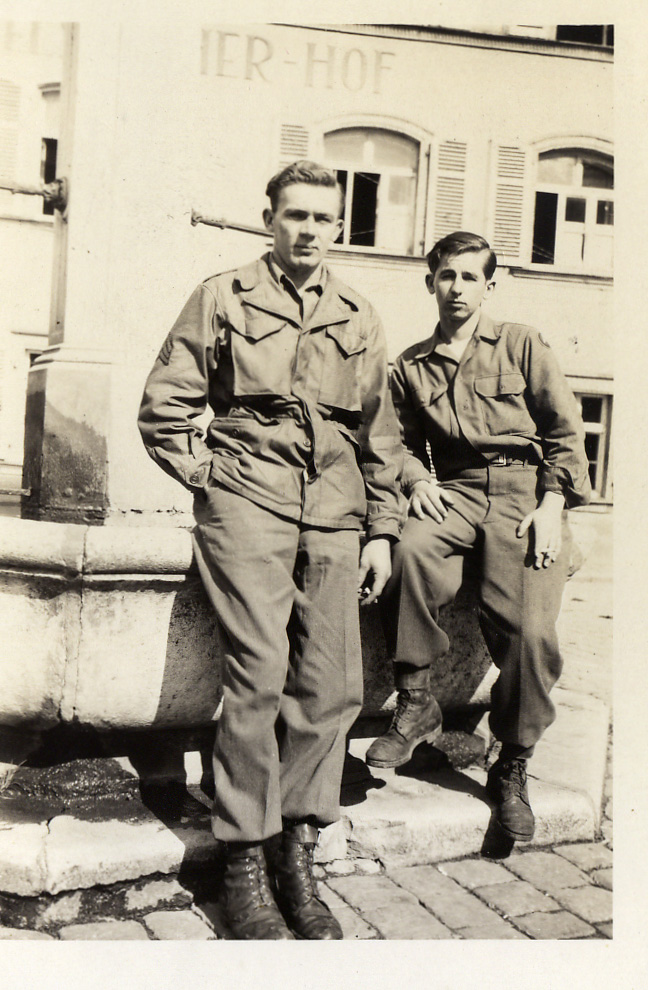 (left to right) Mike Accordino, Anthony (Tony) Cassano, ? , Leon Kukulka, Frank ? while at Stadt Steinach. Photo provided by: Leon J. Kukulka |